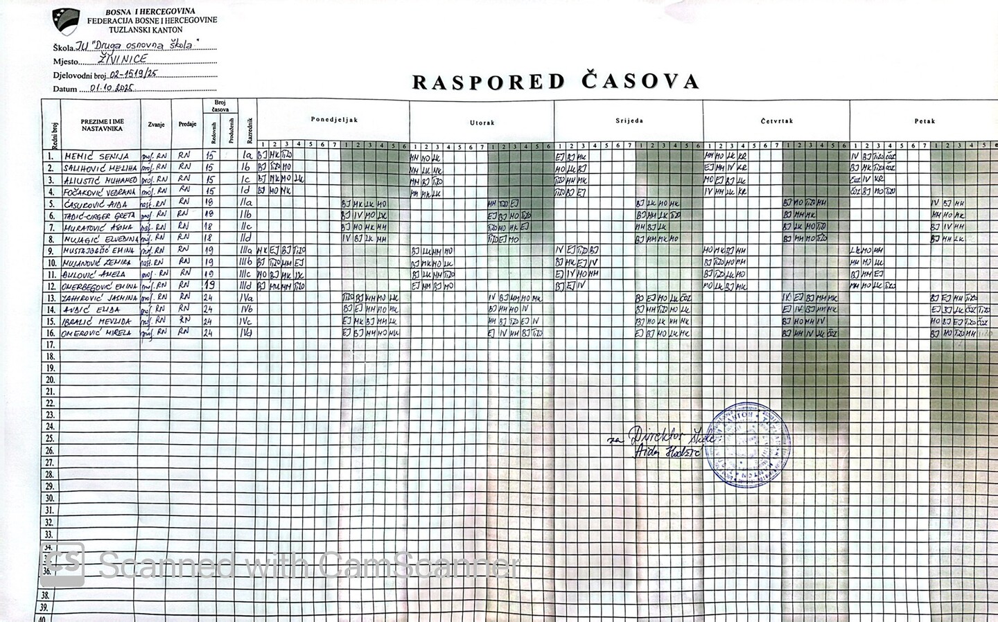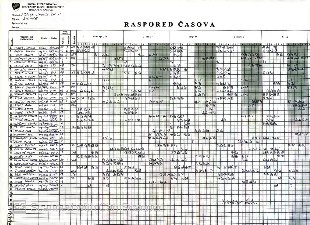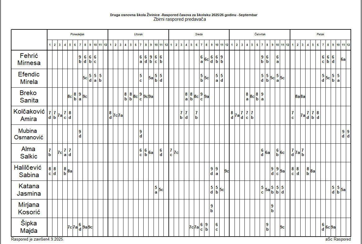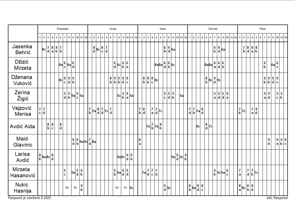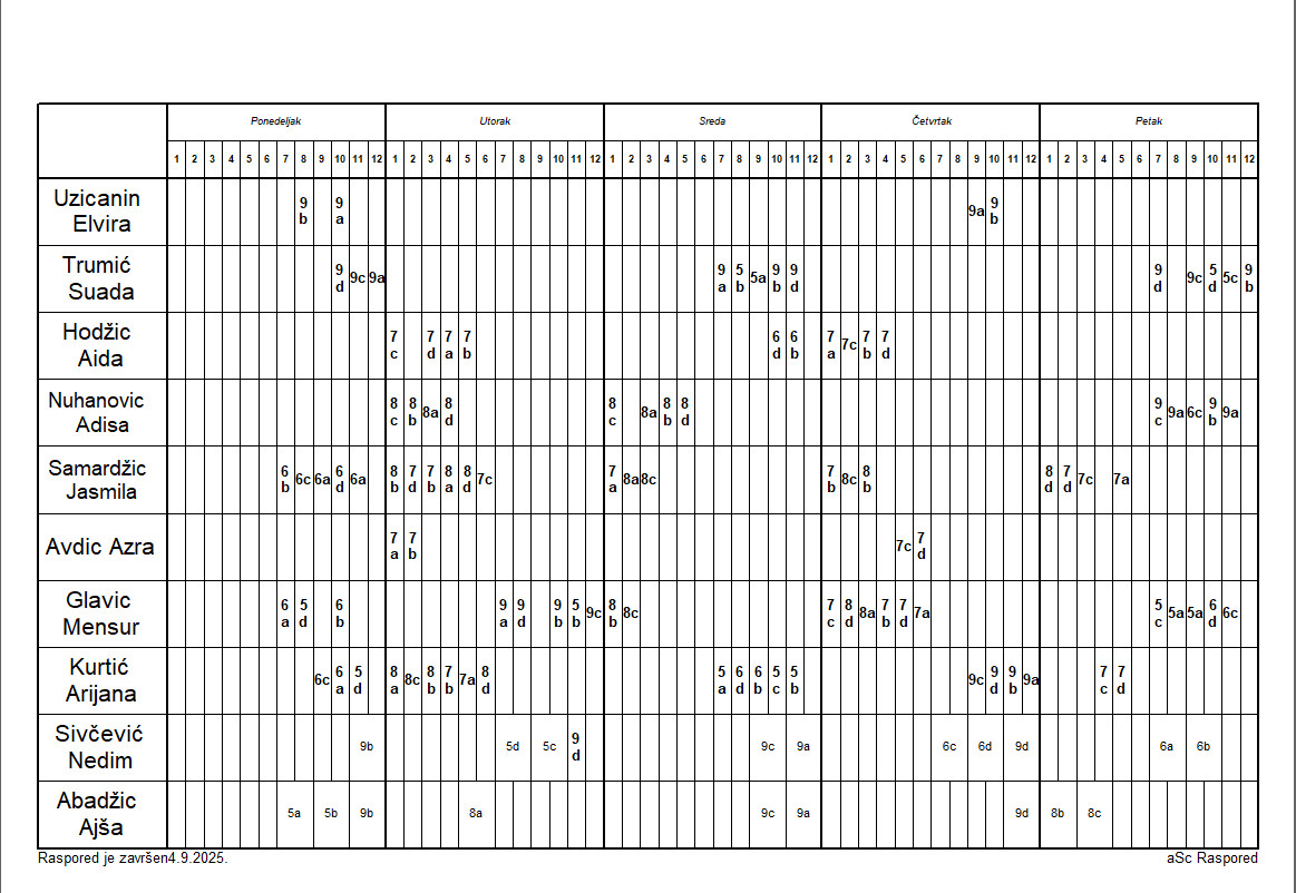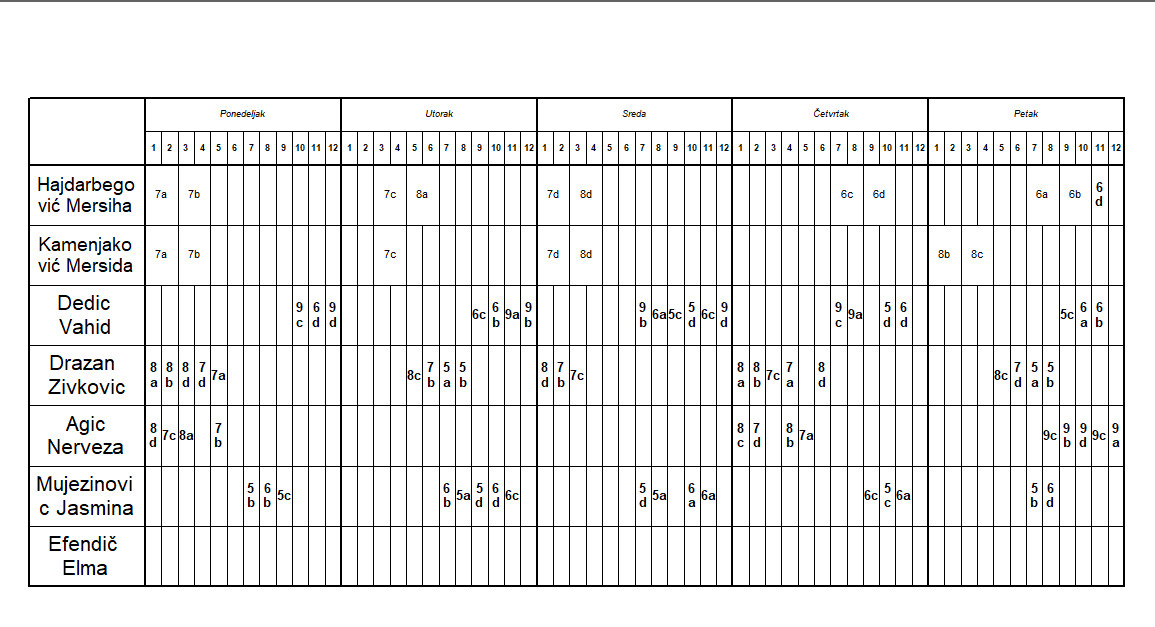 Raspored časova za predmetnu nastavu IX,XI,II,IV i VI mjesec- smjene se mijenjaju mjesečno