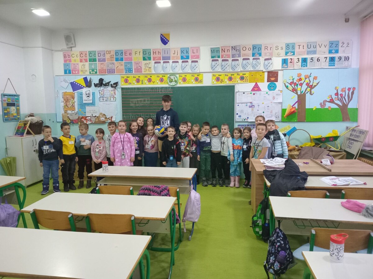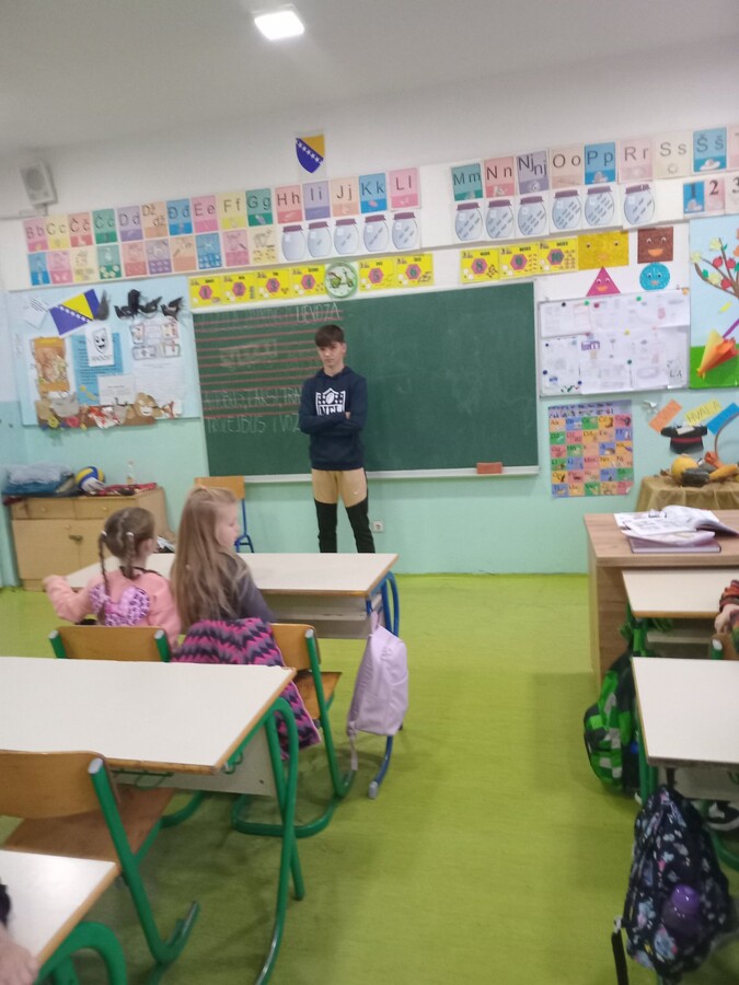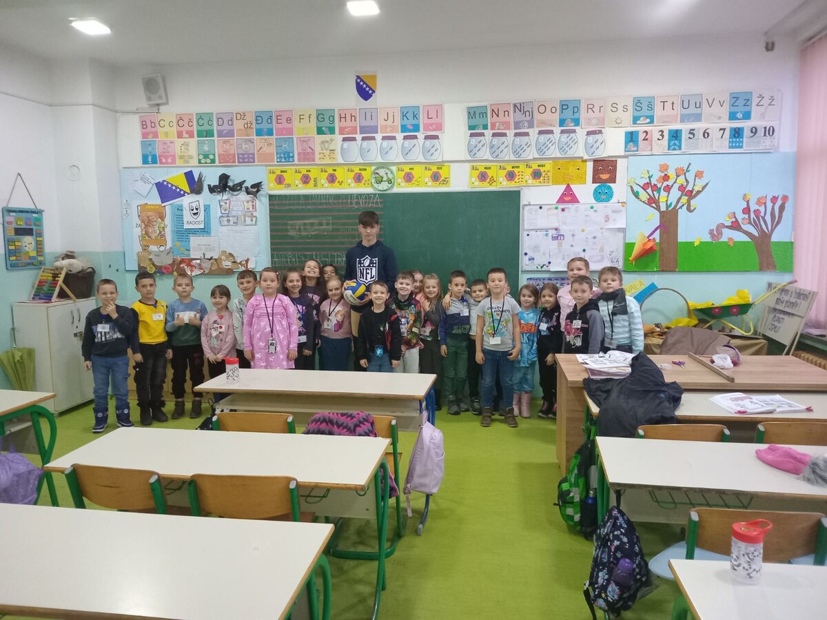 U okviru teme Zdravlje i sport predvidjena je posjeta jednog sportiste . Gost 1.a odjeljenju bio je ucenik 9.a odjeljenja Fejzic Halil koji je vec dugo vremena  treninira fudbal. Vrijedan i radin ucenik rado je svoje dugo iskustvo i pozrtvovanje kao i disciplinovano ponasanje docarao ucenicima 1.a. Pricao im je i o zdravoj ishrani kao i vaznosti treniranja u nekim od sportova. Uciteljica:Senija Memic